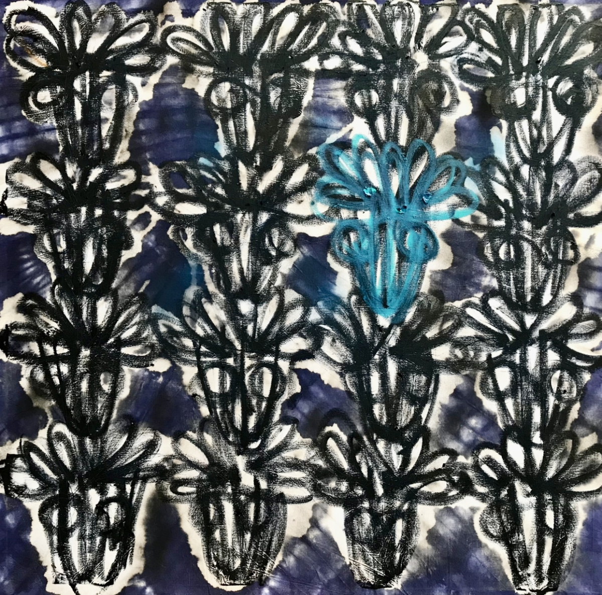 Suraj Adekola, born 1983. I am a Nigerian contemporary artist based in Manchester, UK. My work is explores identity, globalization, unity, cultural memory, and Black heritage through painting, installation, and drawing. At the core of my practice is Adire—a traditional Nigerian indigo-dyed fabric—which I blend with contemporary media to create a dialogue between the past and the present.