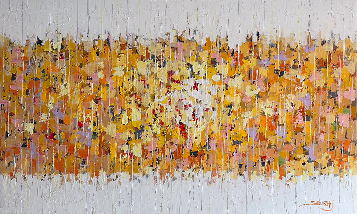 Acrylic, oil sticks and Adire (tie-dye) fabric on canvas